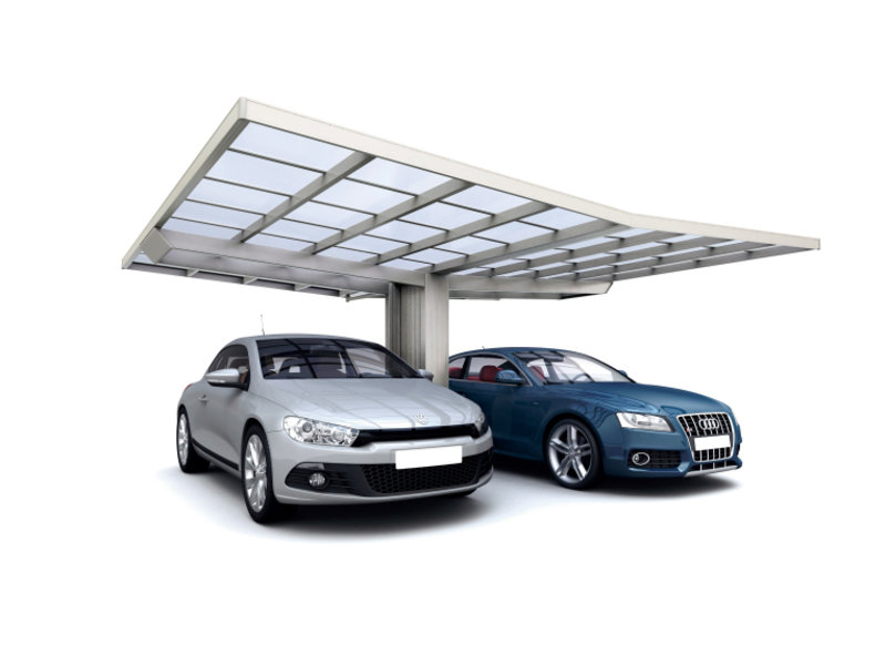 - Dach aus hitzeabweisendem Polycarbonat in Rauchglasgrau: schützt gegen UV- (100%) und Infrarotstrahlung (50%)
