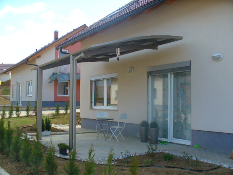 (Die Abbildungen zeigen zu einem grossen Teil auch den Portoforte 110 Design-Carport. Der wesentlichste sichtbare Unterschied zum Portoforte 60 Design-Carport besteht darin, dass letzterer weniger Querstreben in der Dachkonstruktion besitzt.)